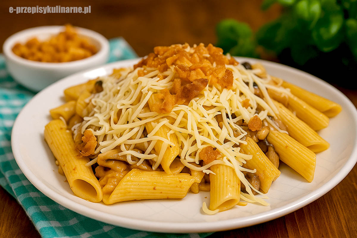 Najlepiej sprawdzi się penne, fusilli lub kokardki – takie kształty dobrze łączą się z gęstym sosem.