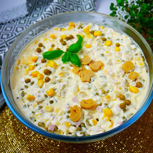 Sałatka z szynką konserwową i pieczarkami