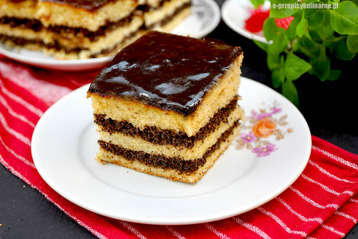 Najpierw pieczesz biszkopt, który po wystudzeniu przekroisz na trzy warstwy. W tym czasie przygotowujesz domową masę makową, delikatnie podgrzewaną na maśle, aby zgęstniała i nabrała aksamitnej konsystencji. Następnie blaty nasączasz herbatą, przekładasz masą makową, a na koniec wykańczasz ciasto polewą czekoladową.