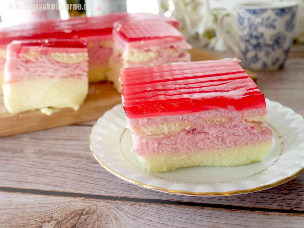 Duo Chmurka to jeden z tych deserów, które udają się zawsze i każdemu. Przygotowanie polega głównie na ubiciu lekko tężejącej galaretki z jogurtem, dzięki czemu każda warstwa jest puszysta, stabilna i wyjątkowo delikatna. Połączenie cytrynowej i truskawkowej pianki daje ładny, kontrastowy efekt, a całość wieńczy cienka warstwa galaretki i biszkopty.